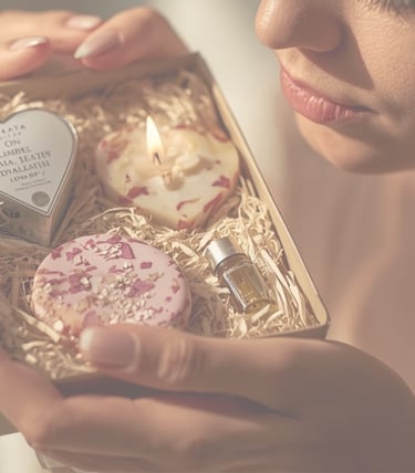 Un ritual completo en un solo Kit incluye Vela de corazón, Jabón artesanal exfoliante, Aceite aromático, elaborados para crear una experiencia sensorial que transforma.
